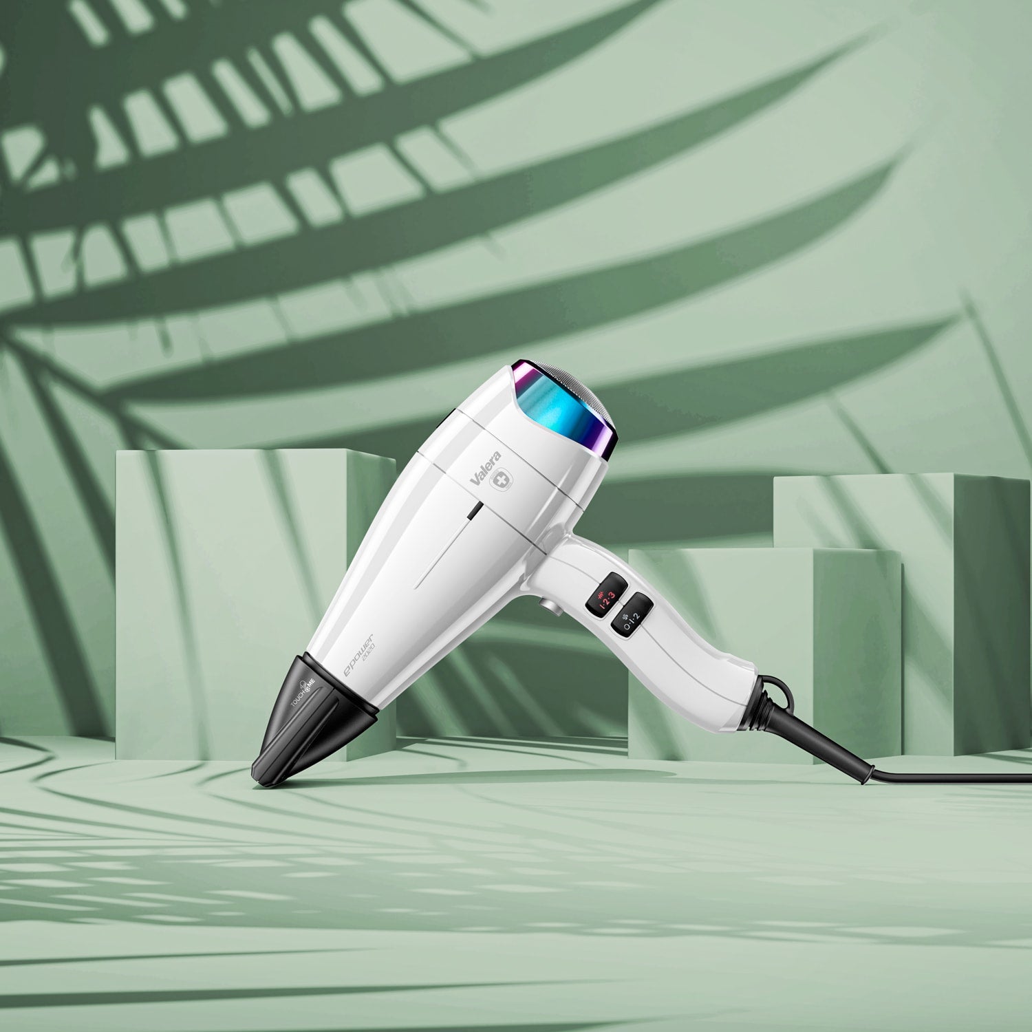 The environmentally friendly and energy-saving ePower2020 eQ hairdryer combines drying performance and salon-like styling results with sustainability. Its excellent performance figures with low energy consumption and extra-long motor life (up to 10,000 hours) convince hairstylists and demanding private users. The elegant design, ergonomically shaped handle and convenient switches make hair styling a pleasure, in the salon and at home. ePower 2020 eQ guarantees professional hair styling with responsibility for the environment.