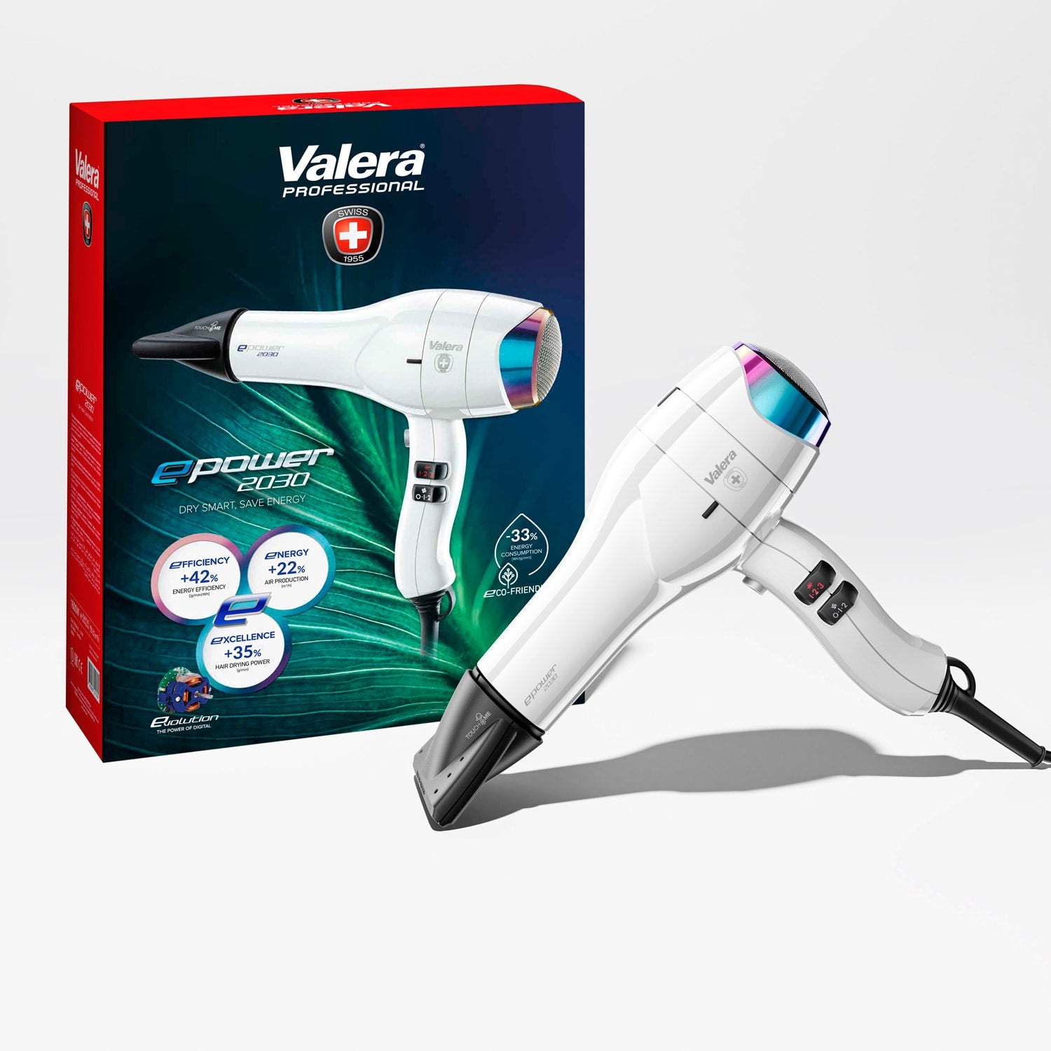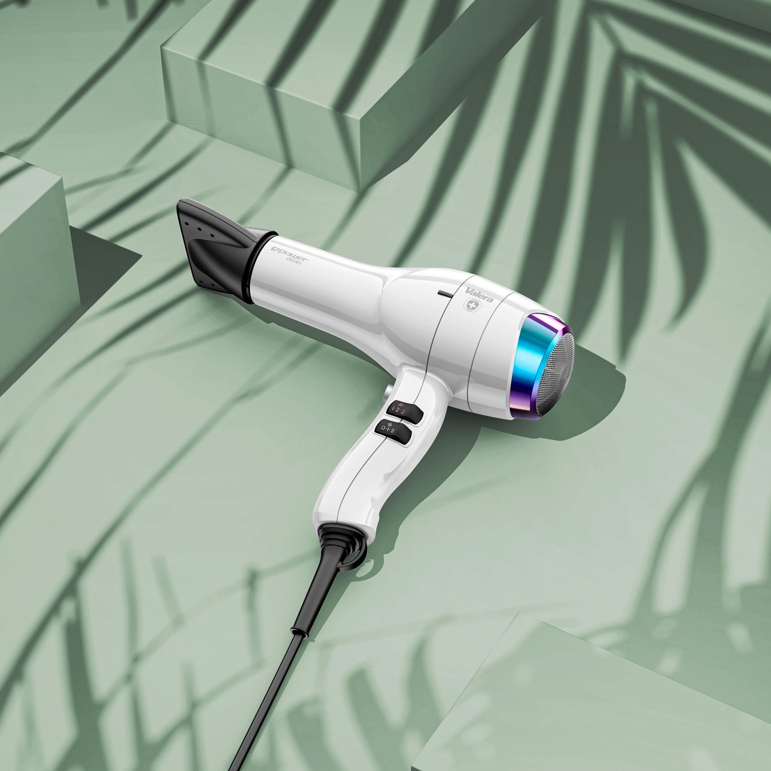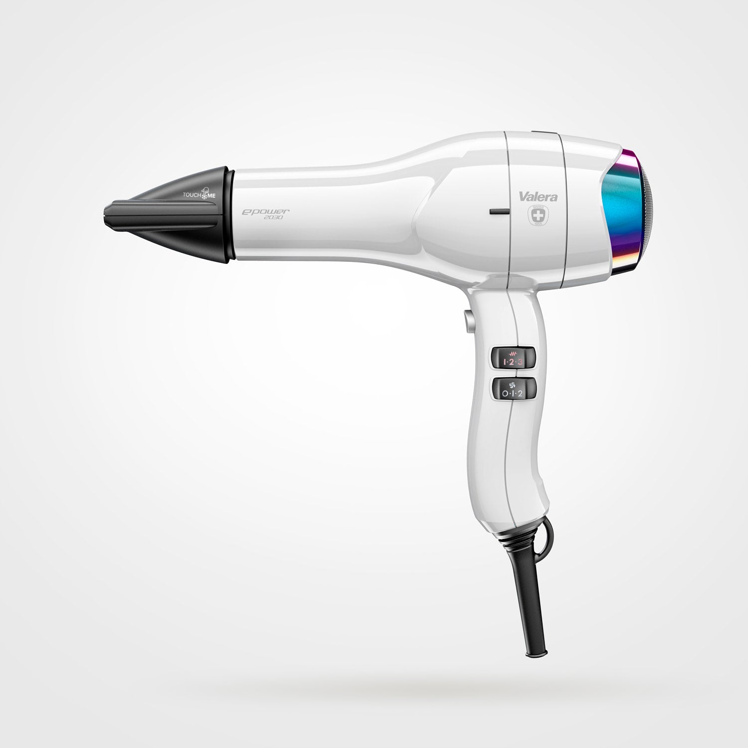 The environmentally friendly and energy-saving ePower2030 eQ hairdryer combines drying performance and salon-like styling results with sustainability. Its excellent performance figures with low energy consumption and extra-long motor life (up to 10,000 hours) convince hairstylists and demanding private users. Thanks to its elongated shape, the hairdryer allows for a variety of handling options. It can be held comfortably by the ergonomic handle as well as by the cool blowing tube or the motor body. ePower 2030 eQ guarantees professional hair styling with responsibility for the environment.